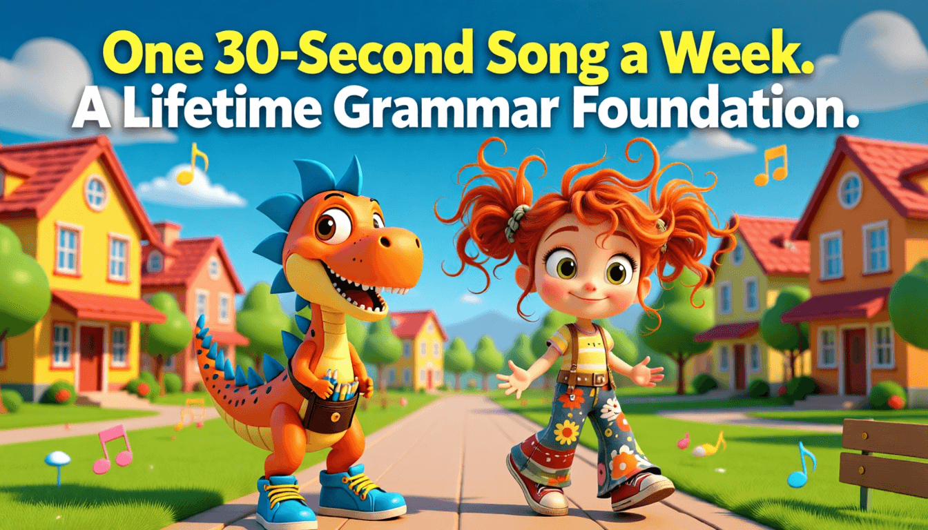 By the end of 1st grade, using just 30-second musical grooves, my daughter tested at a 6th-grade grammar level. She had "loaded" the vocabulary of a middle-schooler before she could even write a clean sentence.